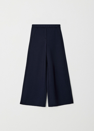 Школьные брюки широкого кроя. Плотный эластичный трикотаж из смесовой вискозы. Высокая посадка талии с поясом на регулируемой резинке. Ложный гульфик и карманы с отрезным бочком. Брючины полной длины. Школьная коллекция.