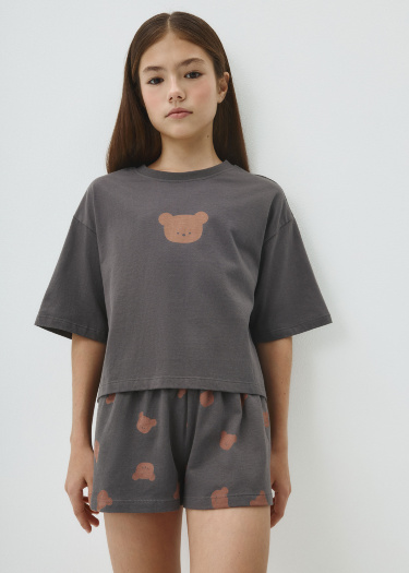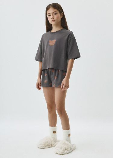 Пижамные шорты с контрастным набивным принтом. Мягкий эластичный трикотаж из смесового хлопка. Свободный крой с комфортной средней посадкой талии. Эластичный пояс. В коллекции представлена футболка из комплекта арт. 4810150353.