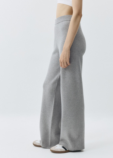 Прямые вязаные брюки. Плотный трикотаж из смесовой вискозы. Высокая посадка талии и с широким эластичным поясом. В коллекции представлен свитер в тон арт. 4809010668. На модели представлен размер S. Параметры модели: 175.