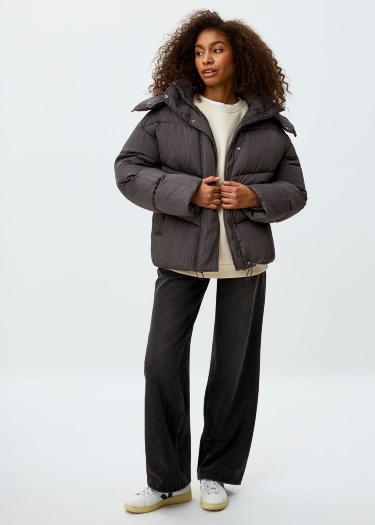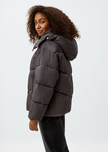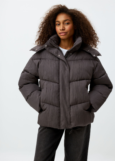 Короткая дутая куртка оверсайз с фигурной стежкой